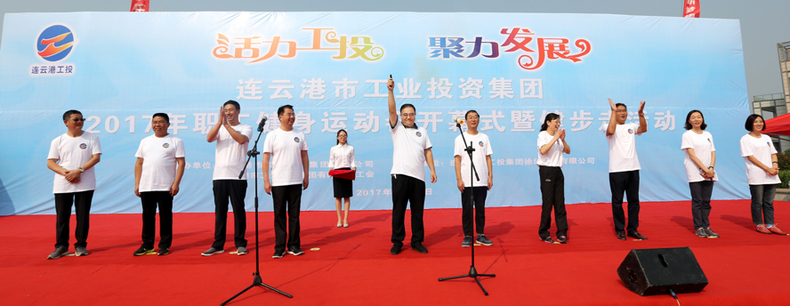 金秋九月,天藍氣清。為豐富職工業余文化生活,展示職工健康文明、積極向上的精神面貌,9月23日上午,集團公司2017年職工健身運動會開幕式暨健步走活動在徐圩新區云湖廣場隆重舉行。集團公司董事長、黨委書記楊龍宣布運動會開幕,并為健步走活動發令。總經理胡建明致開幕詞,工會主席戴鴻鳴主持開幕式。