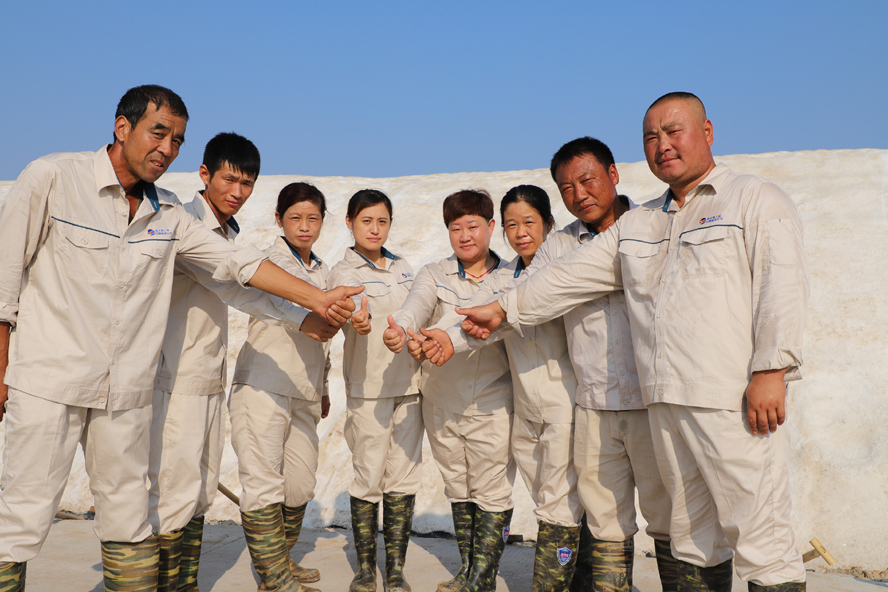 祝星星堅(jiān)守著軍人的優(yōu)良傳承,發(fā)揮一名共產(chǎn)黨員的忠誠(chéng)信仰,在工作中奮力拼搏,創(chuàng)新?tīng)?zhēng)優(yōu)。2017年,祝星星所在的八班被集團(tuán)選為食用原料鹽生產(chǎn)基地,要求灘容灘貌要有高標(biāo)準(zhǔn),要?jiǎng)?chuàng)新研究生產(chǎn)新工藝。如何才能生產(chǎn)出合格鹽?面對(duì)全新的課題和生產(chǎn)任務(wù),祝星星沒(méi)有打退堂鼓,他帶領(lǐng)班組全體員工,不怕吃苦、敢挑重?fù)?dān),在短短一年的時(shí)間里,使海水原料鹽結(jié)晶區(qū)灘地面貌煥然一新,全灘池堰無(wú)露土,條條上線,整齊劃一,灘地完好率達(dá)95%以上。為了提升鹽質(zhì),他研究海礦鹵參兌結(jié)晶新工藝,積極推行“傳統(tǒng)海鹽+新式工藝”生產(chǎn)模式,大力推進(jìn)“216”式單池加鹵法,科學(xué)調(diào)配海礦鹵水比例,完善鈣液除硫工藝,成功生產(chǎn)出合格的新品種鹽1.5萬(wàn)噸,為打造生產(chǎn)優(yōu)質(zhì)的食用原料鹽生產(chǎn)基地奠定了堅(jiān)實(shí)的基礎(chǔ)。