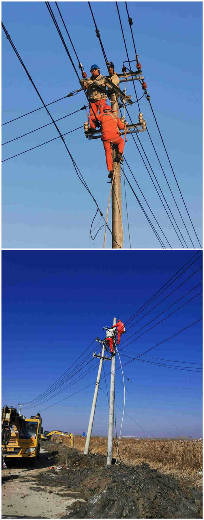 220日下午448分,青口供電所接到電話黃沙分場送水道挖掘機施工碰倒10千伏養殖線電桿造成整個黃下線停電,請該所盡快人處理。所值班領導迅速組織線路工到達現場,經勘察發現123向轉角桿電桿碰斷一根,120高壓導線拉斷3.。為了不影響其他用戶正常用電,果斷將養殖線斷路器分離,恢復黃下線其他線路正常供電。同時上報公司領導,聯系機械準備搶修所需材料。當下正值養殖池塘進水期間,為了盡快恢復養殖線供電221日早上7搶修人員全部到位并進行安全交底及人員分工安排。730分所有機械到位,進行立桿、拔桿、地錨安裝、更換導線等系列工作。