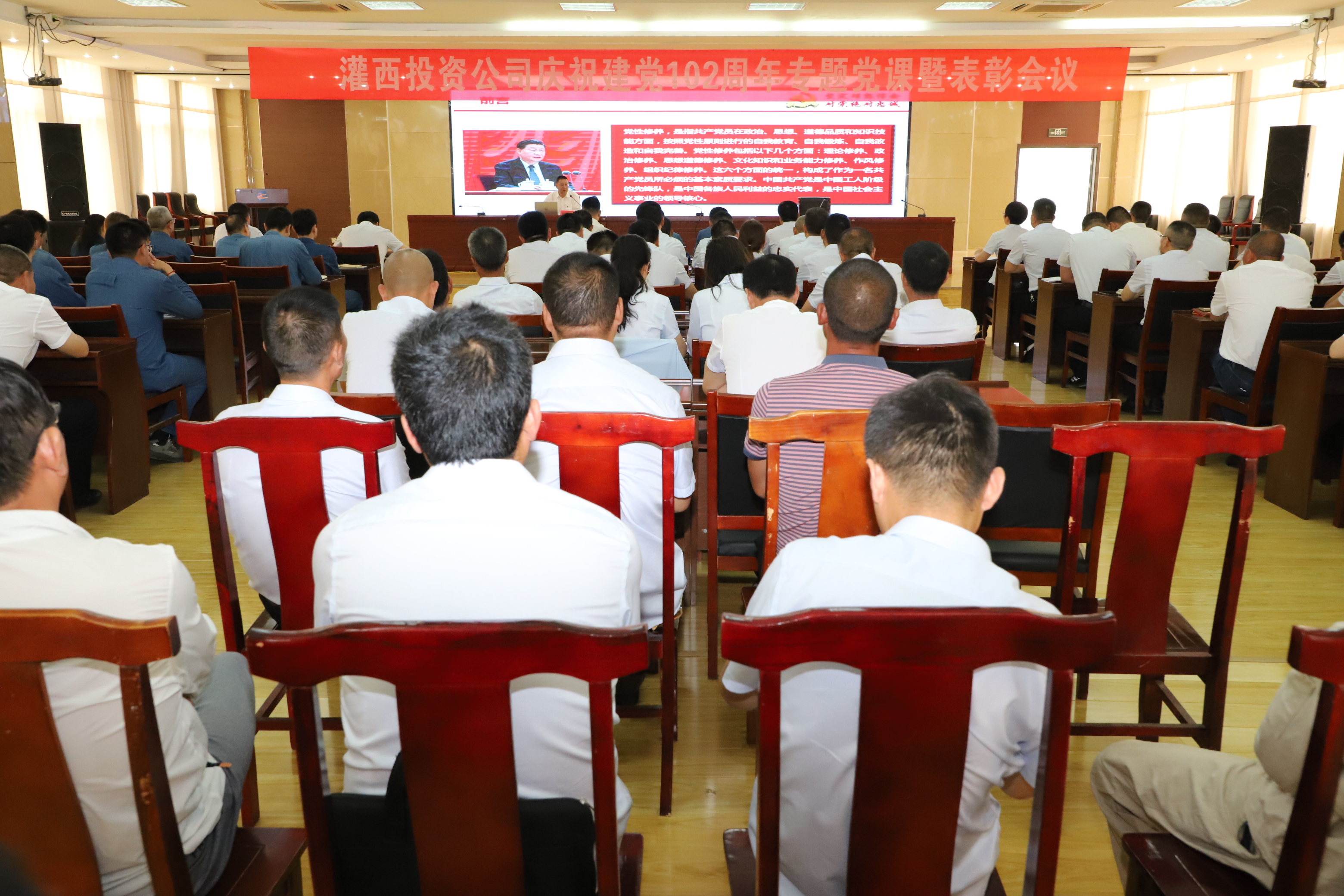 灌西投資公司黨委舉辦慶祝建黨102周年專題黨課暨表彰大會