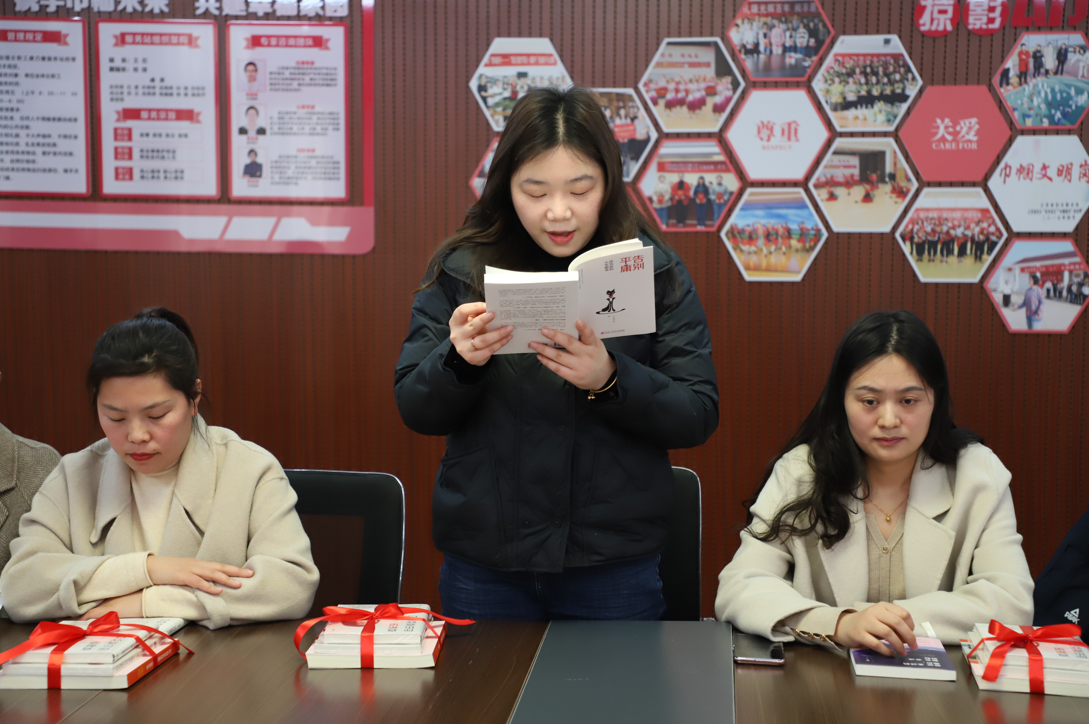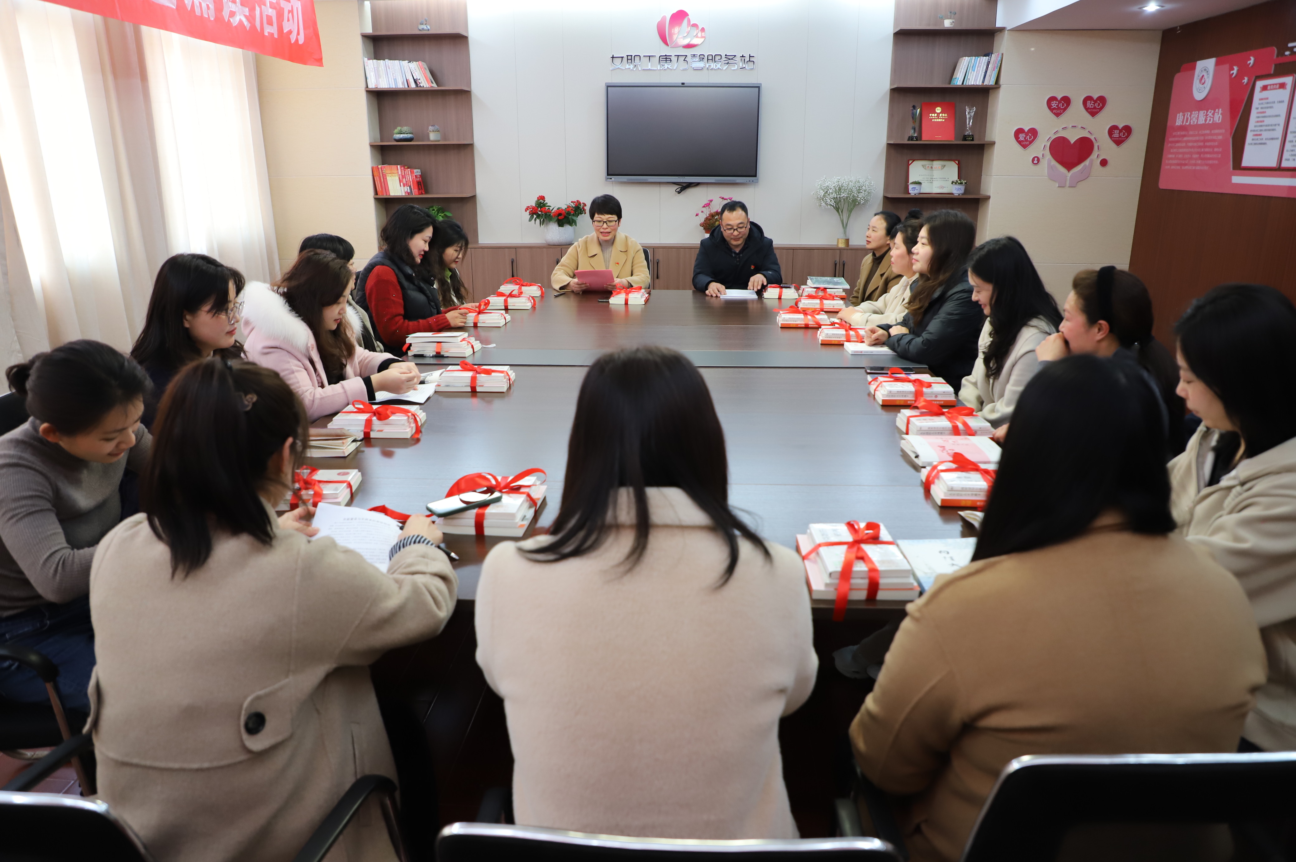 來吧,來吧,相約三八。相約在春光明媚的三月里,相約在閱讀分享的文韻里,相約在康乃馨服務站里......。3月7日下午14:00,公司工會開展的“巾幗心向黨”主題書分享會在女職工朗朗的誦讀中拉開帷幕。來自公司各條戰線上的女職工教育、文學、哲學、健康等方面內容,進一步抒發家國情懷,弘揚時代精神,給我們帶來一場聽覺盛宴。塑造知識型的“她”,并為女職工贈送有關紅色主題、女性勵志等方面的書籍,在廣大婦女中營造“好讀書、讀好書、讀書好”的良好氛圍,促進家庭文明、社會和諧。