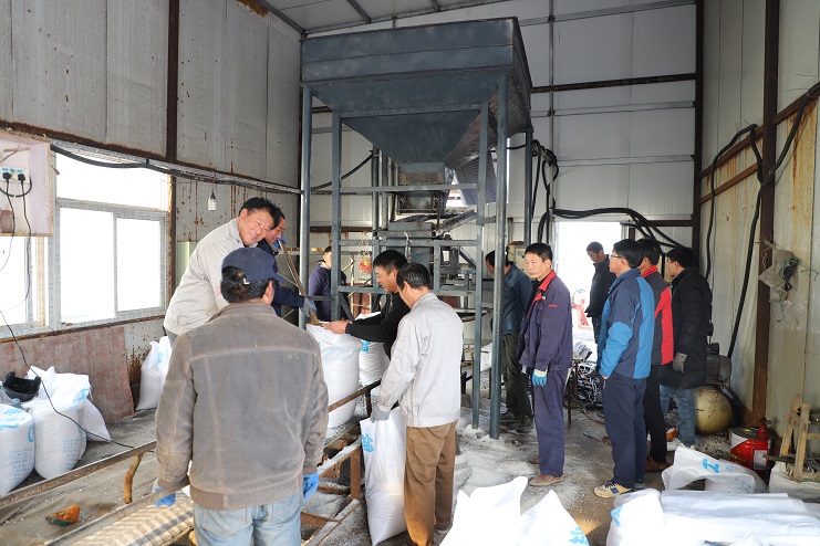 11月28日,我們在走訪宵洋物流公司筑包鹽基地時看到,原來銹蝕嚴重的卸料槽已經進行了重新加固,車間外的加工設備也更換完畢并進行了防銹處理,幾名工人正在場地上進行人工原鹽筑包,經過縫包后的原鹽正通過皮帶輸送機源源不斷的傳送到車廂內。車間里,機電公司的員工們正在進行著磅秤的調試工作。據了解,為了最大限度的降低因設備更新而造成的影響,自11月9日筑包設備維護更新工作開始以來,該基地就采取人工筑包方式進行邊生產、邊更新。據介紹,目前筑包基地上廢舊的筑包設備已經全部拆除,新設備基本安裝到位,部分留用的設備也進行了必要的維護保養,目前正在進行最后的磅秤調試工作,待調試完畢即可投入使用。