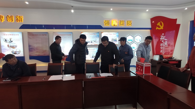 會上黨支部副書記耿劉宣讀選舉辦法及候選人名單,經黨員大會無記名差額投票,監票人潘成軍、唱票人葛高建、計票人匡洪忠統計票數。根據選舉計票結果,安樹林、耿劉、趙斯中、王石、祝星星當選為黨支部新一屆委員會委員。