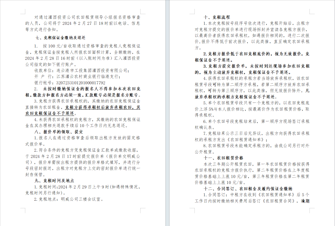 2024年灌西投資公司農田公開 競租公告
