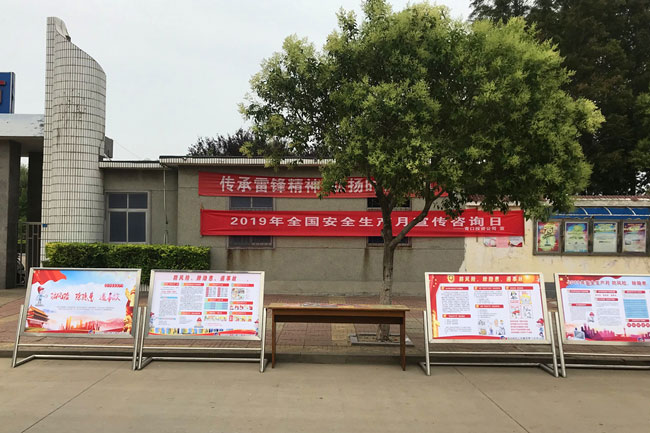6月1 3 日上午,公司舉行以 “ 防風險、除隱患、遏事故 ”為主題的“安全生產月”宣傳咨詢日活動。活動現場,張貼安全月主題掛圖12幅,展板5塊,發放《 營造安全環境,維護社會穩定 》、《 應急管理基礎知識 》、《 防風險、除隱患、遏事故 》、《 用電安全十不準 》 、《急救自救與互救知識》 等宣傳單 4 00余張。