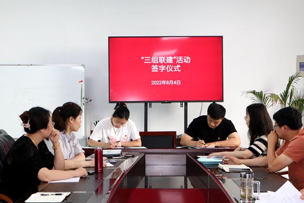 為了深入推進“三組聯建”工作機制,8月4日下午,公司舉行“三組聯建”活動簽字儀式,黨小組、生產班組、工會小組的組長參加活動。活動由公司黨支部副書記袁忠主持。