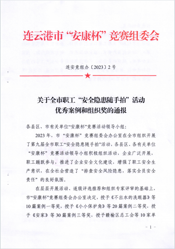 近日,市“安康杯”“安全隱患隨手拍”活動獲獎作品揭曉,公司員工邱菊參賽作品《不出水的洗眼器》獲得一等獎,陳士亮參賽作品《無用的燃氣報警器》獲得二等獎。(神特宣)