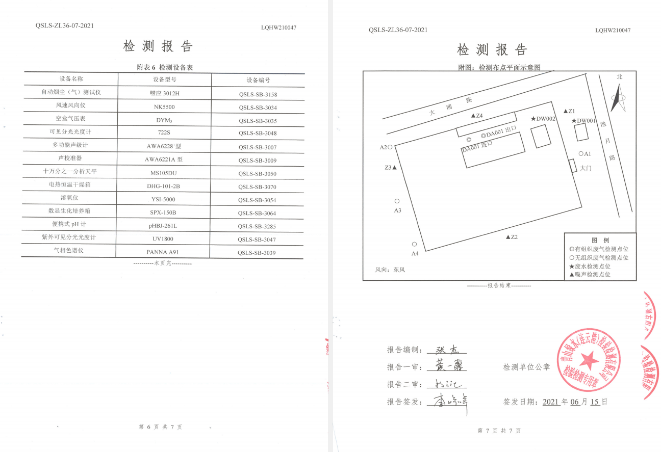 神特公司檢測報告公示