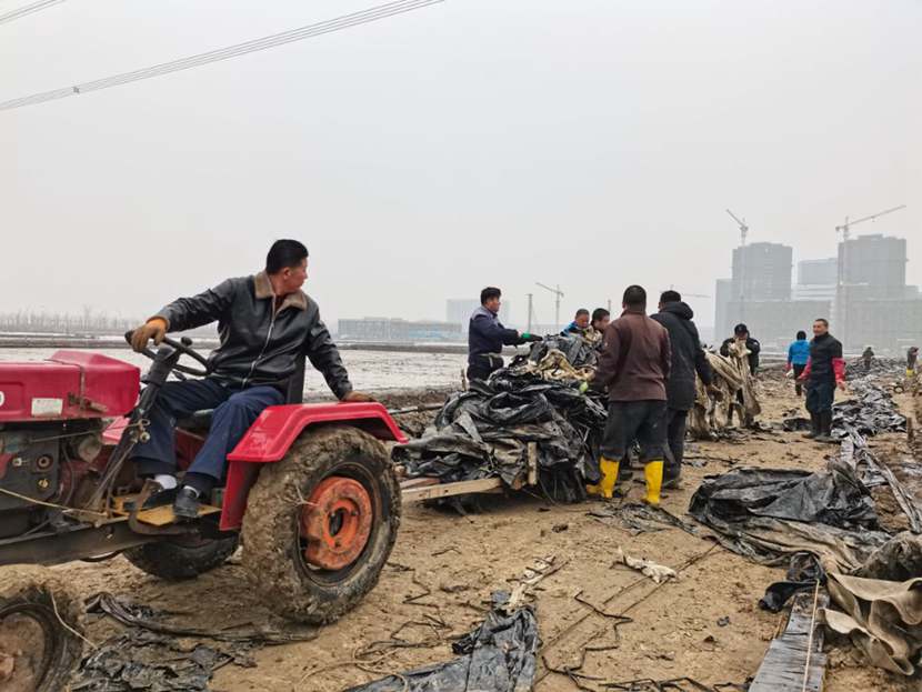 110日下午,第一批馳援隊伍——翔立分公司黨員突擊隊到達先鋒班組,結合海州灣公司黨員突擊隊共30余名隊員,穿戴好工作服、水鞋,兩人一組,三人一隊,雙肩挑,三人抬,緊張有序地清理生產現場拆除下來的廢棄的塑布、鋼絲等雜物。