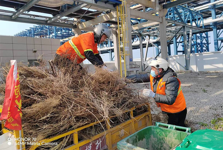 4月9日11點(diǎn),石化一班接到公司應(yīng)急處理任務(wù),中化倉儲車間院內(nèi)有多處雜草、垃圾需及時(shí)處理。班長陳小軍與同事陸軍等同志顧不上用午餐,迅速騎上電動三輪車奔赴現(xiàn)場。現(xiàn)場工作中,大家相互配合,無所顧及枯草、生活垃圾發(fā)出的陣陣難聞怪味。徒手裝車,轉(zhuǎn)運(yùn)傾倒,經(jīng)過近三個(gè)多小時(shí)搶裝轉(zhuǎn)運(yùn),清理雜草20多車,各類垃圾30多袋,高質(zhì)量完成中化倉儲罐區(qū)環(huán)境突擊任務(wù)。往來廠區(qū)車間工作人員看著雜亂不堪的垃圾瞬間消失在人們眼前,無不豎起贊許目光,此次保潔衛(wèi)士深入廠區(qū)開展突擊治理,受到中化主管部門高度評價(jià)。(楊波)