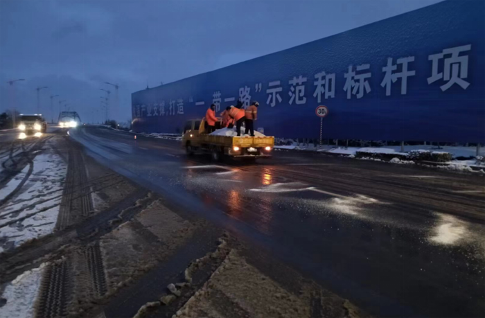 此次掃雪除冰行動共40余人參與,調(diào)派鏟雪車、裝載機等機械設(shè)備5臺,調(diào)用融雪劑30余噸,采用人機結(jié)合方式,對主要干道人行便道、交叉路口等重要地段的路面冰雪進(jìn)行人工突擊清理;對所轄干道的橋面采用先雪鏟車清理,后鋪灑融雪劑相結(jié)合融化冰雪,循環(huán)進(jìn)行。
